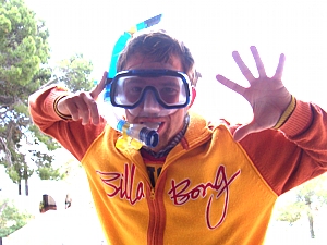 lange ersehnte Taucherbrille, samt Schnorchel und Flossen.