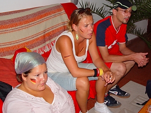 großer Truppe zum Public Viewing in der Schinkenstraße. Die