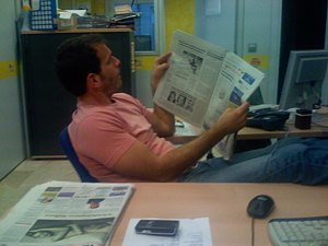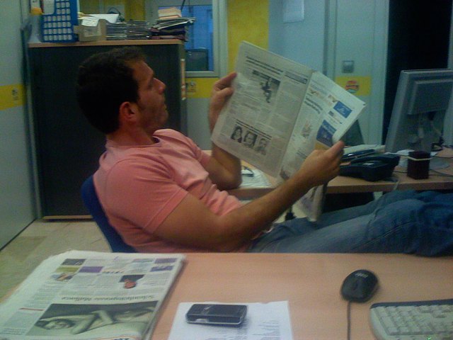 und dabei Zeitung liest, während Andere arbeiten. Ich glaube außerdem, dass er