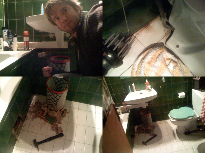 Badezimmer aufgekloppt werden, und wir können hier nicht mehr die Dusche